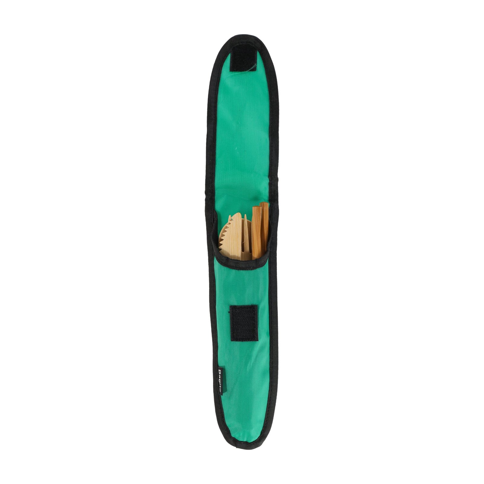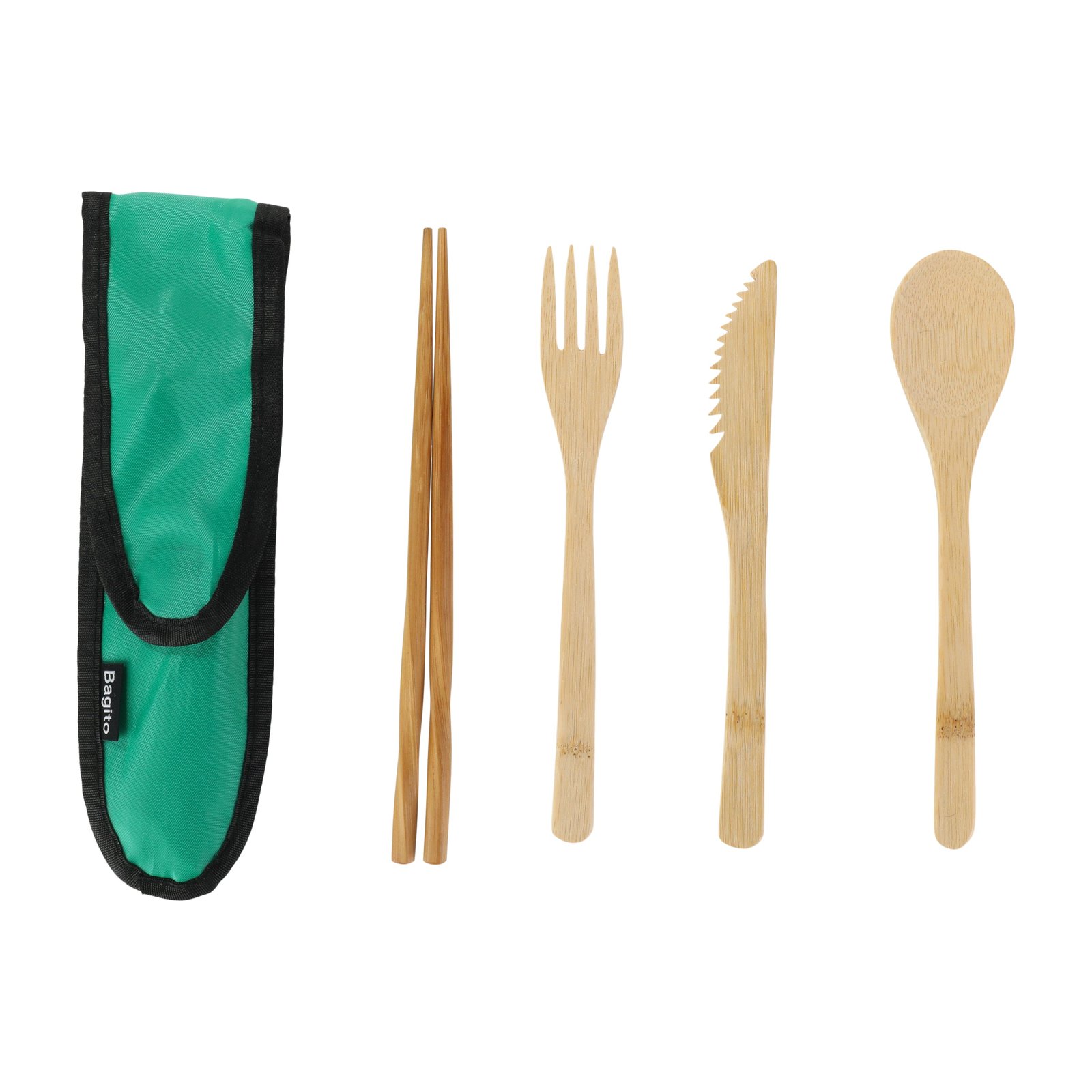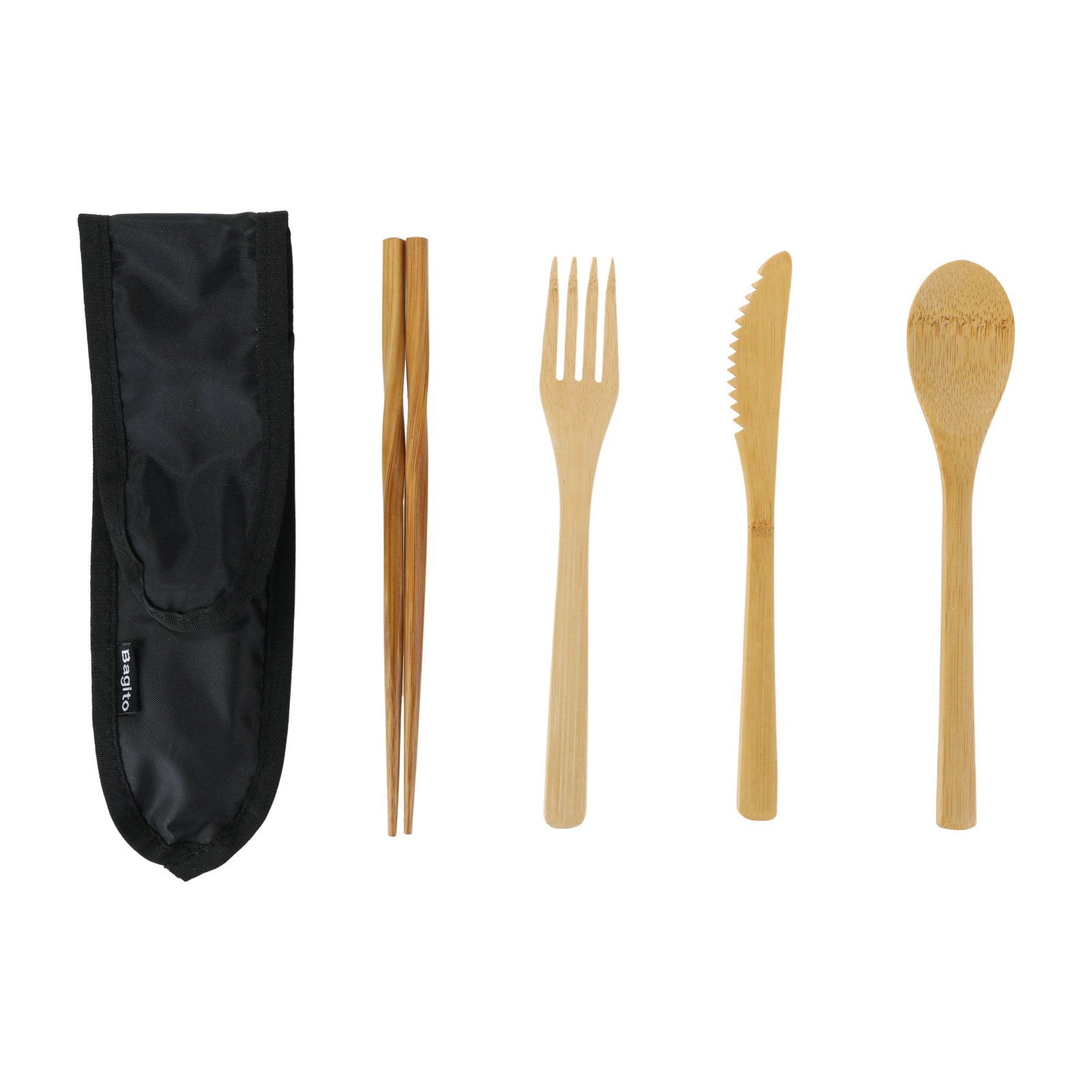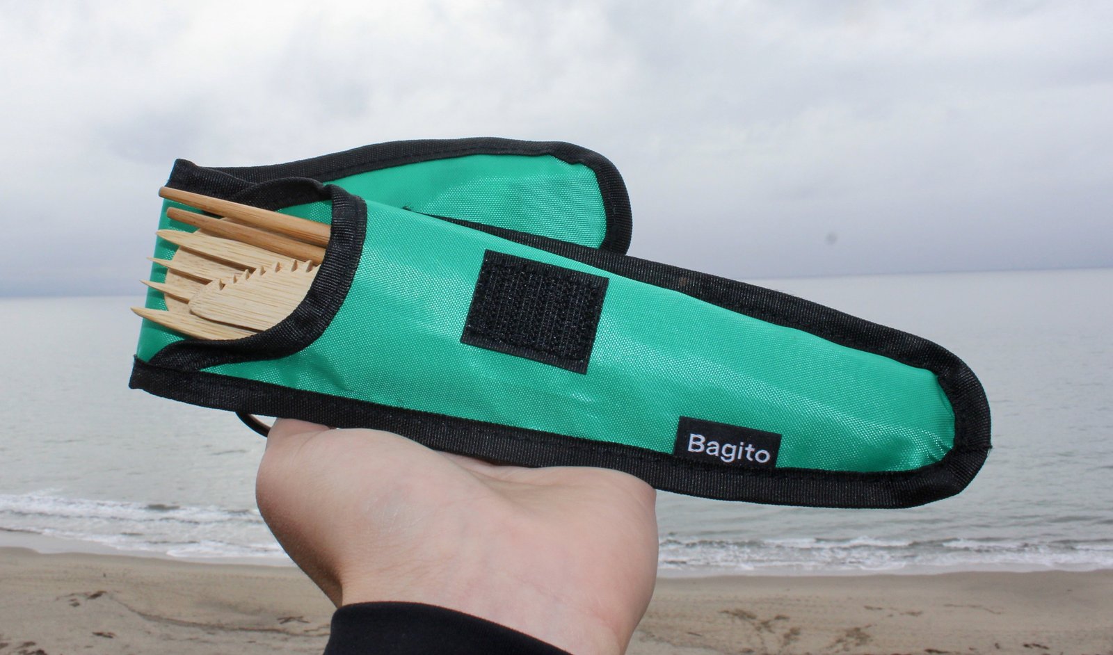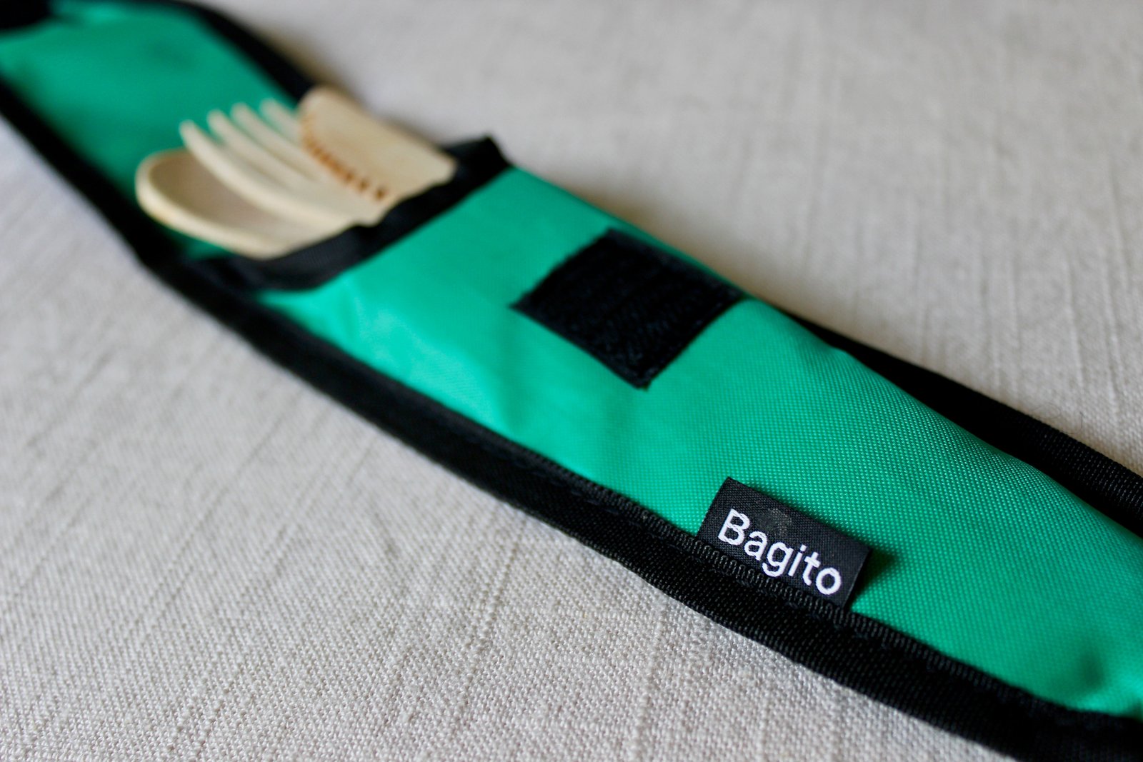 Never use a plastic fork again! Bagito’s premium reusable cutlery set is made from 100% natural and non-coated bamboo. Super smooth and full sized, the set includes: a fork, spoon, knife, and chopsticks in a durable rPet fabric pouch with velcro closure and carabiner.