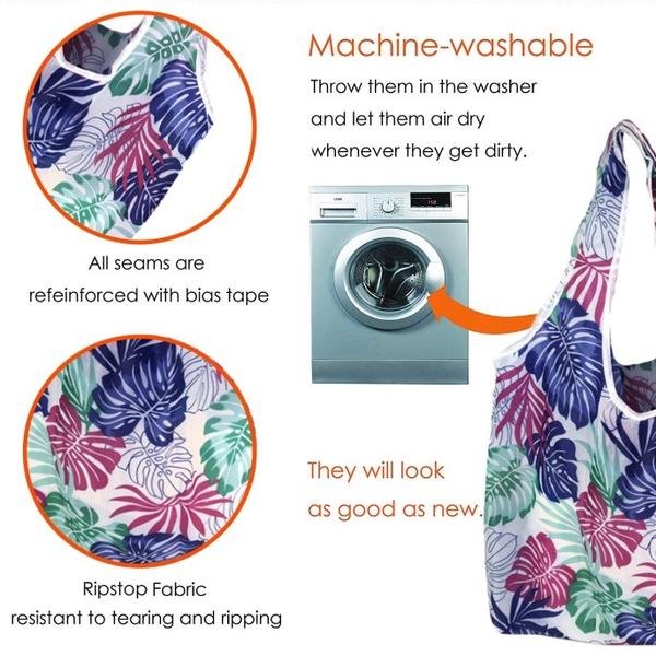 - RIP-STOP FABRIC & WATERPROOF: These grocery shopping bags are made of 100% RIP-STOP nylon cloth which is ideal fabric for grocery shopping bags. It is Lightweight but VERY Sturdy and Resistant to Rips and Water. Our large reusable shopping bags have cute pattern design. Perfect as party favors gifts for women and girls! And can add some fun to your shopping grocery by using large reusable shopping bags like these.